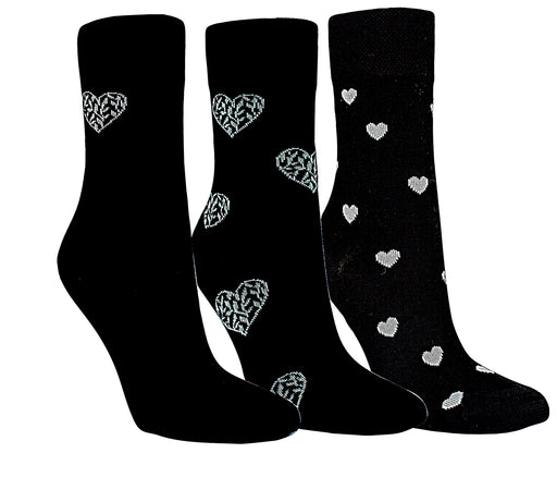 Modische Bambussocken mit Herzchen - Modell 2025 Schwarze Bambussocken mit Herzmotiven Oeko-Tex Standard 100 RS-Harmony Qualität Softrand, Fer...